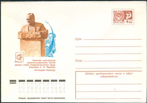 1976 г. Памятник конструктору ракетно-космических систем дважды Герою Социалистического Труда академику С.П. Королеву Космодром Байконур.