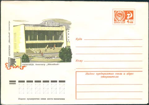 1976 г. Здание кинотеатра. Текст: "Караганда. Кинотеатр "Юбилейный"".