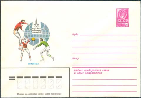 1979 г. Эпизод игры в волейбол. Текст: "Игры XXII Олимпиады. Москва-80".
