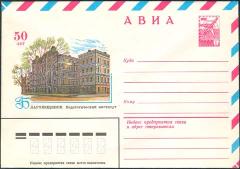 1980 г. Здание института. Текст: "Благовещенск. Педагогический институт. 50 лет."