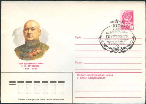 1981 г. Герой Гражданской войны Г.И. Котовский 18881 - 1925.