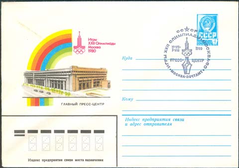 | Примечание: Примечание(я): СГ1. Темно-синий спецштемпель с текстом: "Игры XXII Олимпиады Москва-80 Пресс-центр 19.VII -3.VII 1980 Москва Почтамт". | |||||||||