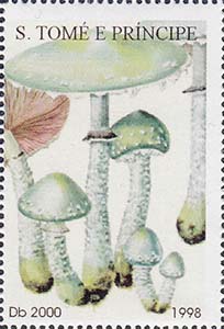 1998 г. 02.07.1998 г.  Разм. по перфорации 34 х 50 мм. Многоцветная печать на белой бумаге. Зубц. 13 3/4 х 14. С клеем. В центре различные грибы. Сверху название страны. Внизу номинал и год выпуска.