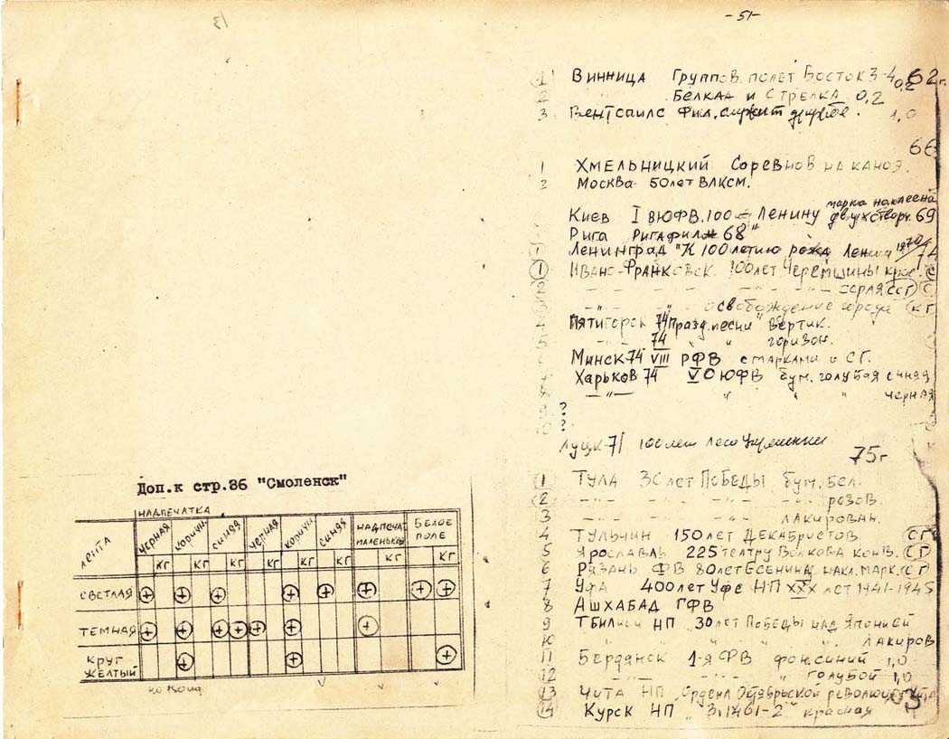Дополнения к каталогу сувенирных листков (автор неизвестен).