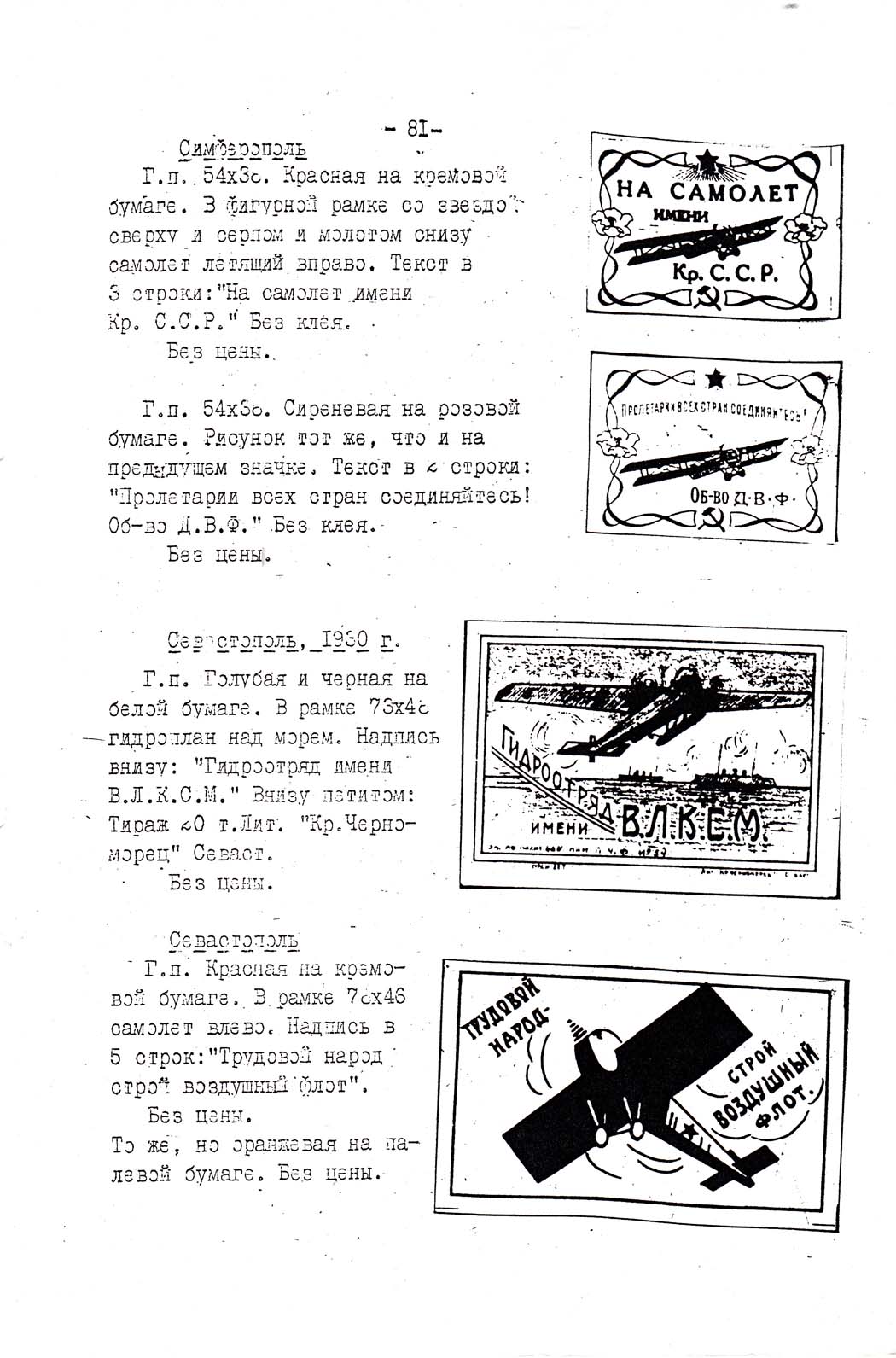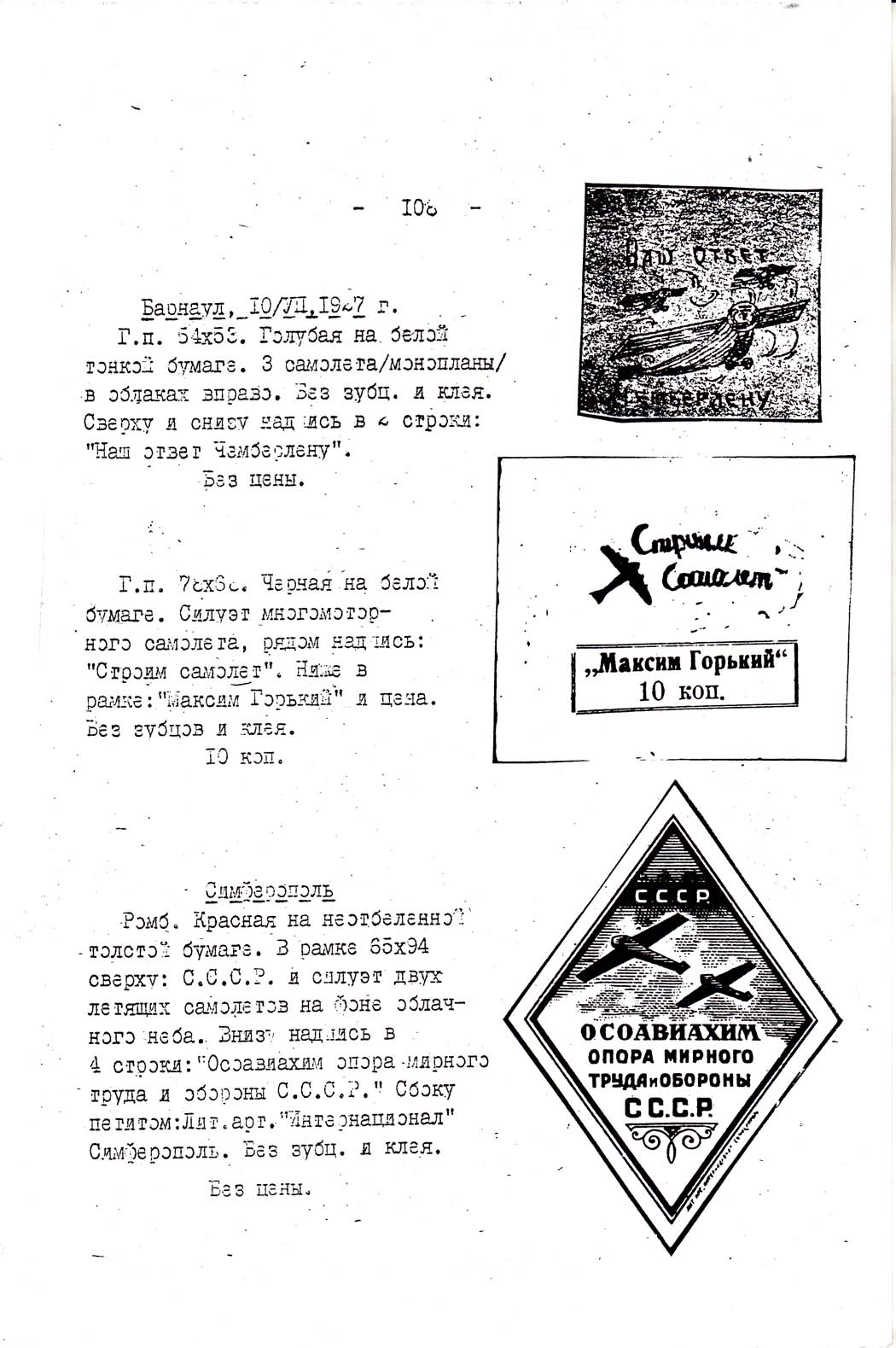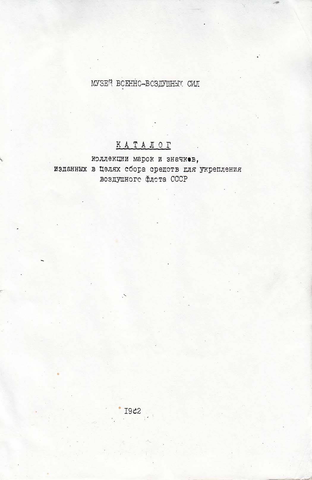 Каталог коллекции марок и значков, изданных в целях сбора средств для укрепления воздушного флота СССР. Музей ВВС. 1962.
