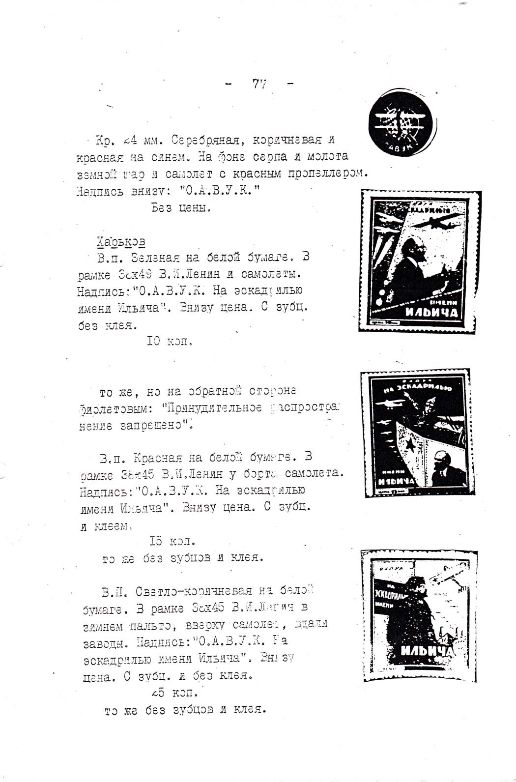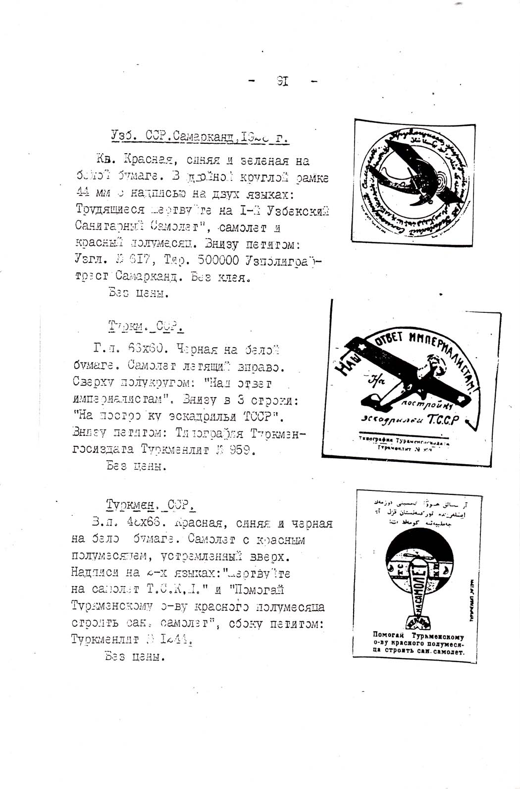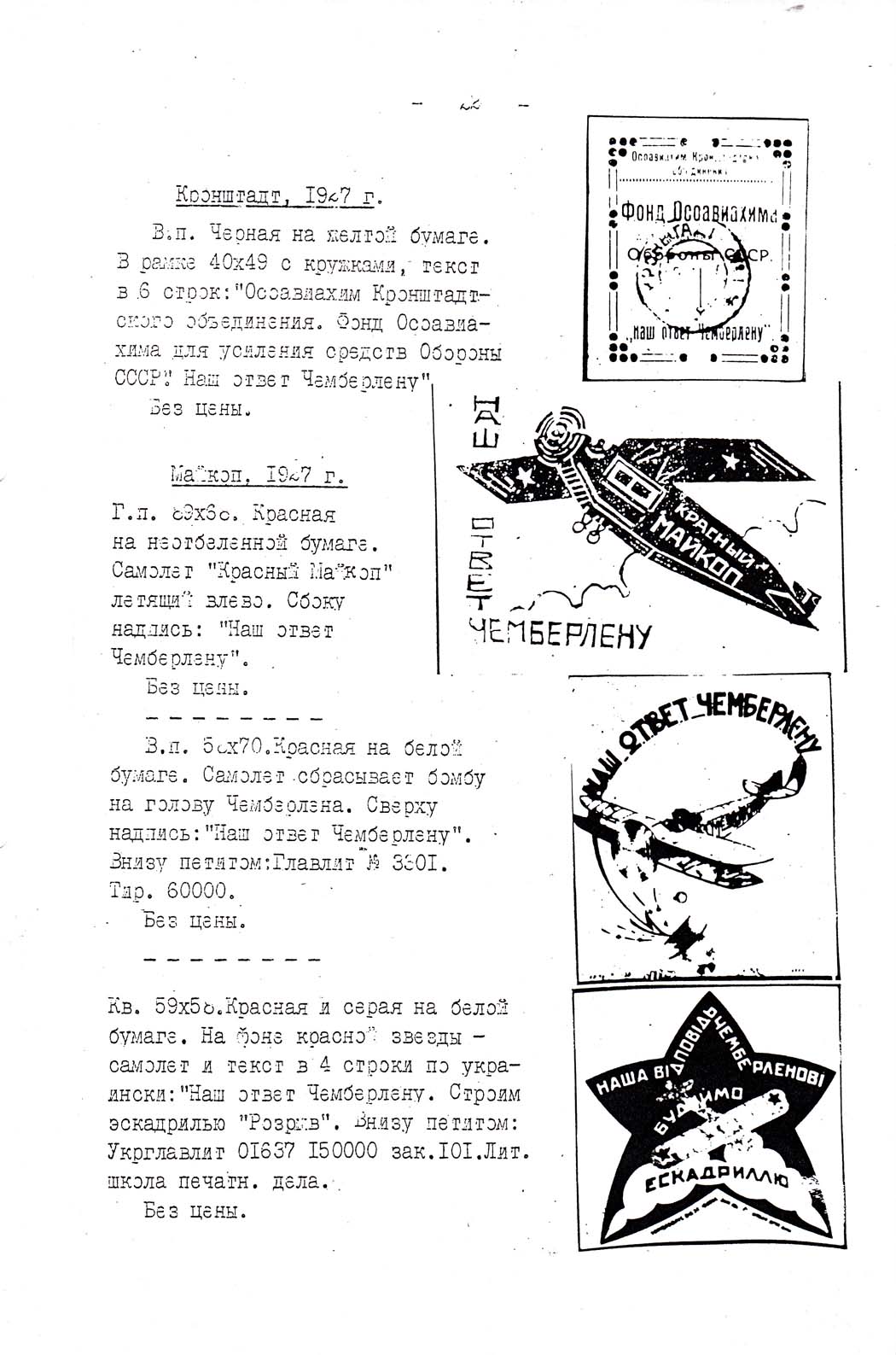 Каталог коллекции марок и значков, изданных в целях сбора средств для укрепления воздушного флота СССР. Музей ВВС. 1962.