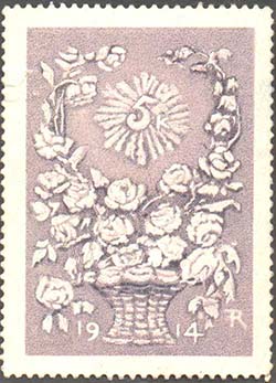 1914 г. Разм. по перфорации 35 х 54 мм. Одноцветная и многоцветная печать на белой бумаге. Зубц. 11 1/2. С клеем. Различные рисунки. Дата «1914» и номинал.