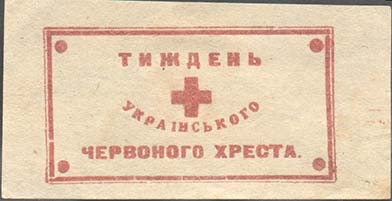 1925(?) г. Разм. рамки 48,5 х 26 мм. Одноцветная печать на белой бумаге. В центре красный крест. Текст на украинском языке в три строки: «Неделя Украинского Красного Креста».