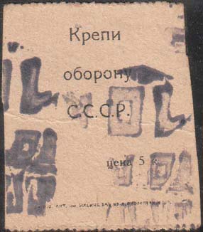 1932(?) г.  Пятый вспомогательный выпуск. Серо-фиолетовая надпечатка текста в две строки: «Пролет[арский]. ОАХ» и нового номинала в виде текста: «10 к.» в рамке.