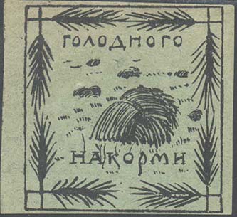 Разм. рамки  47 х 48 мм. В прямоугольной рамке в центре поле со снопами. Текст в две строки: «Голодного накорми».