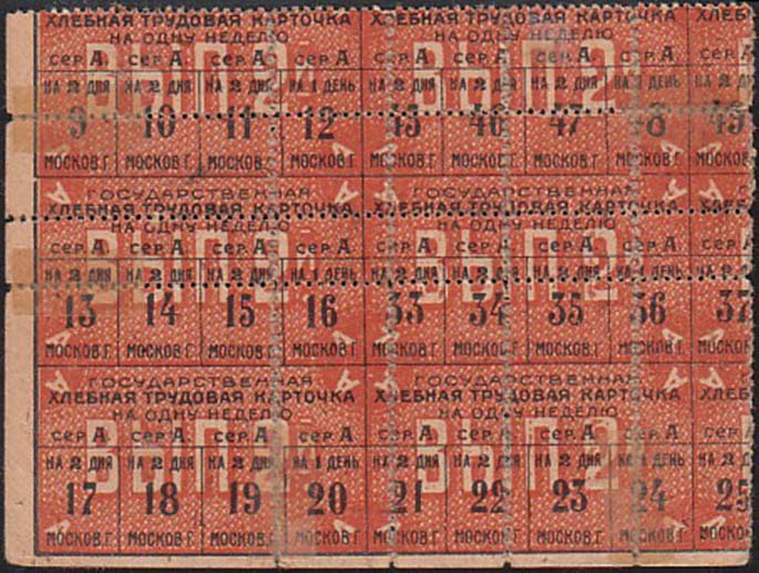 1921 г. Листок разм. 115 х 85 мм. Одноцветная печать на сероватой бумаге. Печать на оборотной стороне хлебной карточки. В прямоугольной рамке номинал: «5 т.».
