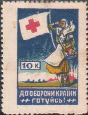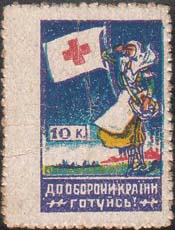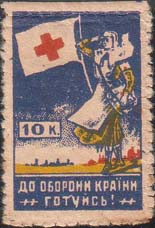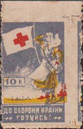 1932(?) г. 1932(?) г. Многоцветная печать низкого качества на бумаге различных видов. С клеем и без клея. Нерегулярная зубц. и БЗ. Рис. аналогичен предыдущему выпуску. Внизу текст на украинском языке в две строки: «К обороне страны готовься!».