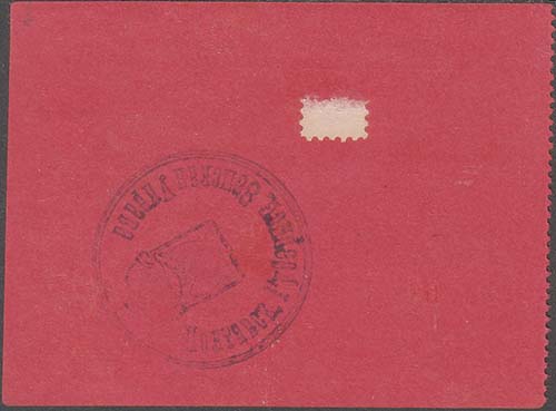 Примечание: Примечание(я): Существуют знаки данного выпуска с фиолетовыми оттисками круглой печати Полтавской губернской земской управы на оборотной стороне.