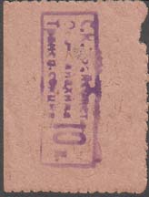 1931 г. Второй выпуск. Разм. рамки 23 х 32,5 мм. Многоцветная печать на бумаге различных цветов c мелованным верхним слоем, тонированным в различные цвета. В двойной прямоугольной рамке в центре эмблема ОСОАВИАХИМ. По углам пятиконечные звезды. Внизу под рамкой слева выходные данные мелким шрифтом: «А 10. 25.-36.». На оборотной стороне фиолетовый оттиск штампа разм. 27 х 10 мм. В штампе слева текст в три строки: «С[еверо].К[авказский]. Крайсовет Осо-Авиахима Трансп[ортная]. секция». Справа крупным шрифтом номинал: «10 к.».