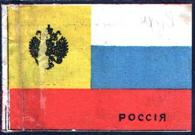 1915 г. 01.05.1915 г. Виньетки в виде флагов стран-союзниц России в Первой мировой войне. Разм. ≈ 58 х 42 мм. Двухцветная, трехцветная и многоцветная двухсторонняя печать на белой бумаге. На лицевой стороне в правом нижнем углу название страны. На оборотной стороне черный текст в две строки: «На помощь жертвам войны». Ниже текст в одну строку мелким шрифтом: «Москва, Маросейка, д.14. Тел. 60-64».