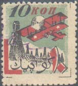 | Разм. рис. 22 х 11 мм. В рамке самолет-биплан, летящий влево в облаках. | |||||