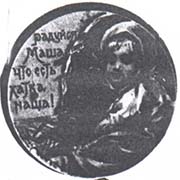 | В центре поясное изображение девочки у шалаша. Слева текст в пять строк: «Радуйся Маша, что есть хатка наша». | |||||||