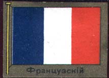 1915(?) г. Разм. 34 х 25 мм. Многоцветная печать на толстой белой бумаге. На сплошном фоне флаги стран-союзниц России в Первой мировой войне на растяжках с древком. Внизу название флагов.