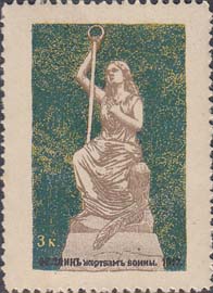 Примечание: Примечание(я): 1. Марки данного выпуска (кроме номиналов 10 к. и 1 р.) печатались в одном листе с рекламными виньетками Министерства финансов «Военный 5 1/2% заем». Расположение марок в листе см. раздел «Агитационные виньетки» данного каталога. 2. Клей марок имеет различные оттенки от бесцветного до коричневого. Встречаются марки из листов, не прошедших гуммирование. 3. Марки номиналом 10 к. и 1 р. печатались в м/л. по 4 шт. (4 х 1), по две шт. каждого номинала (100-00). 4. Существуют горизонтальные сцепки марок номиналом 10 к. с пропуском вертикальной перфорации (60-00). 5. Рисунок марки номиналом 10 к. повторяет рисунок марки, выпущенной Городским Общественным Управлением Санкт-Петербурга, см. Санкт-Петербург. Марки с аналогичным рисунком выпускались также в других городах: Луганск, Харьков.