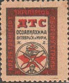 1931 г. Разм. рамки 17 х 23 мм. Зубц. 11 1/2. Трехцветная печать на желто-серой бумаге. В двойной прямоугольной рамке внизу эмблема ОСОАВИАХИМ. Сверху различные тексты в четыре строки. По периметру между рамками текст: «Крепя транспорт, ты укрепляешь оборону страны».