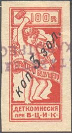 1924 г.   Надпечатки нового номинала на марках первого всероссийского выпуска Деткомиссии при ВЦИК.