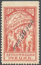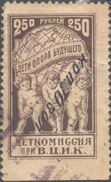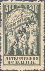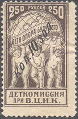 1924 г. Надпечатки нового номинала на марках первого всероссийского выпуска Деткомиссии при ВЦИК.