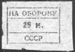 1932 г. Разм. рамки 19 х 13 мм. Одноцветная печать на бумаге различных цветов. Зубц. 11 1/2, Б.З. и просечка. В прямоугольной рамке в центре номинал. Сверху текст: «На оборону». Внизу продолжение текста: «СССР».
