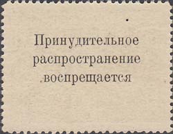 1925(?) г.   Разм. рамки 36 х 27,5 мм. Двухцветная двухсторонняя печать на белой (оттенки) бумаге. Зубц. 11 1/2 низкого качества. С клеем. В прямоугольной рамке в центре изображение здания с текстом на фасаде: «Дом инвалида». По внутреннему периметру рамки текст: «Благотворительная. ВСЕРОКОМПОМ ... коп. ... Помоги инвалиду». На оборотной стороне текст в три строки: «Принудительное распространение воспрещается».