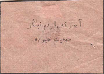 1917 г. Разм. 60 х 42 мм. Одноцветная печать на тонкой серо-розоватой бумаге. В центре текст в две строки на татарском языке арабским шрифтом.