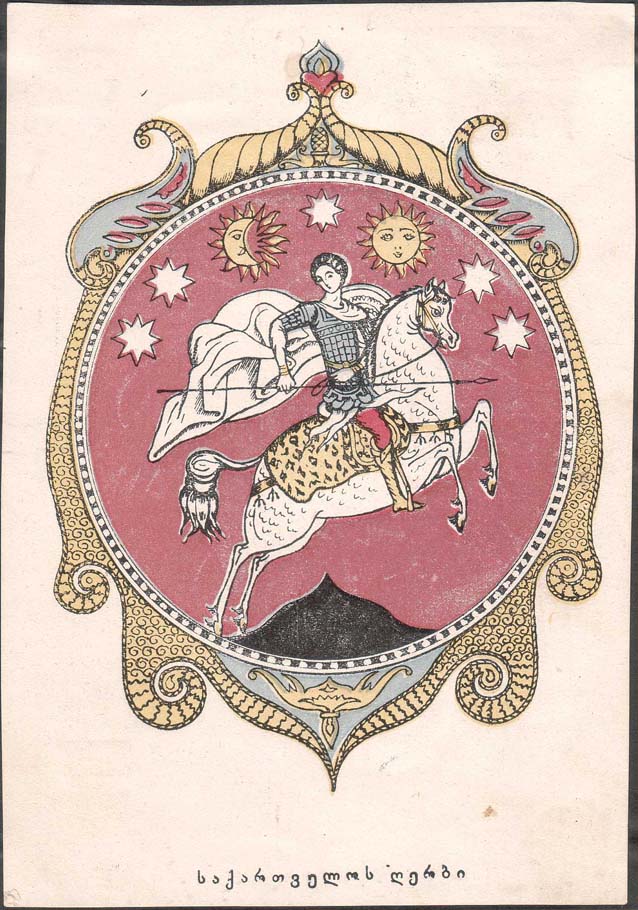 1917(?) г. Листок разм. 152 х 105 мм. Многоцветная печать на белой бумаге. В центре герб Грузии. Внизу текст на грузинском языке: «Герб Грузии».