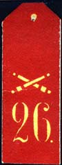 1914 г. 07.12.1914 г. Виньетка в виде погона разм. 13 х 37 мм. Двухцветная печать на белой бумаге. Погон с артиллерийской эмблемой и цифрой 26.