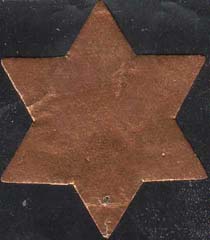 1915(?) г. Виньетка в виде шестиконечной звезды разм. 34 х 40 мм. Одноцветная печать на белой бумаге с золотистым верхним слоем.