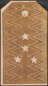 1918 г. 21.11.1918 г. Виньетка в виде погона разм. 34 х 60 мм. Двухцветная двухсторонняя печать на плотной белой бумаге. На лицевой стороне погон с четырьмя звездочками. На оборотной стороне текст в шесть строк: «В память устраиваемого вечера Иркутским Гусарским полком». Ниже декоративный элемент.…