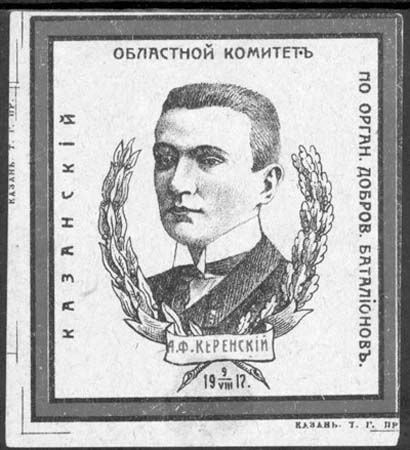 1917 г. 09.08.1917 г. Второй выпуск. Размер рамки 68 х 75 мм. Двухцветная печать на бумаге различных цветов. В двойной рамке в центре портрет А.Ф.Керенского в обрамлении венка с лентой. На ленте текст: «А.Ф.Керенский». Внизу дата: «19 9/VIII 17». По внутреннему периметру рамки с трех сторон текст: …