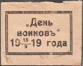 1919 г. 15.09.1919 г. Разм. рамки 39 х 26 мм. Одноцветная печать на бумаге различных цветов. В двойной прямоугольной рамке в центре текст в три строки: ««День воинов» 19 15/9 19 года».