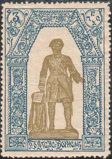 1916 г. Разм. рамки 34 х 49 мм. Двухцветная печать на белой бумаге. С клеем. Зубц. 11 1/2. Различные сюжеты. Текст: «П.Г.О.У. 1916. Полтава – воинам».
