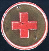 1915(?) г. Круг диаметром 27 мм. Двухцветная печать на толстой белой бумаге. В двойной круглой рамке в центре на сплошном фоне красный крест.