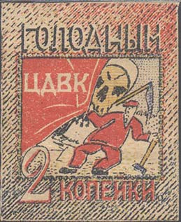 1922 г. Республиканский сбор. Трехцветная и многоцветная печать на белой бумаге. Серия марок различных номиналов с аллегорическими рисунками, символизирующими победу над голодом. На всех марках выпуска аббревиатура «ЦДВК».