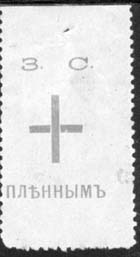 1917(?) г. Разм. 26 х 42 мм. Одноцветная печать на бумаге различных цветов. Зубц. 11 1/2. С клеем. В центре красный крест. Сверху аббревиатура «З.С.». Внизу текст: «Пленным».