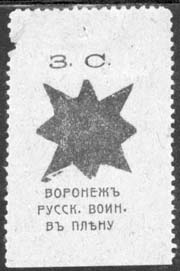 1917(?) г. Разм. 30 х 46 мм. Одноцветная печать на бумаге различных цветов. Зубц. 11 1/2. В центре восьмиконечная звезда. Сверху аббревиатура «З.С.». Внизу текст в три строки: «Воронеж русск[им]. воин[ам]. в плену».
