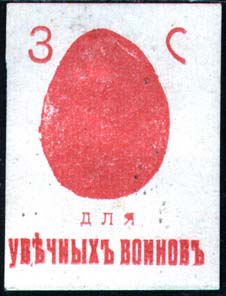 1917(?) г. Разм. 39 х 48 мм. Одноцветная печать на белой бумаге. В центре пасхальное яйцо. Сверху буквы аббревиатуры «3» и «С». Внизу текст в две строки: «Для увечных воинов».