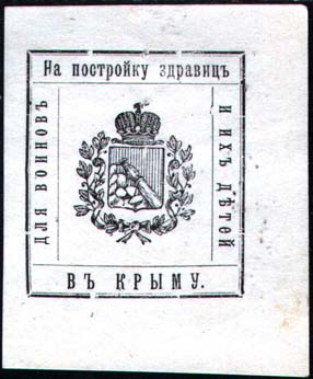 1915 г. Всероссийский сбор. Разм. 48 х 56 мм. Одноцветная печать на белой бумаге. В двойной прямоугольной рамке разм. 33,5 х 38 мм в центре герб г. Воронежа. По периметру между рамками текст: «На постройку здравниц в Крыму для воинов и их детей».