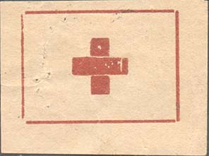 1928(?) г. Разм. 49 х 37 мм. Одноцветная печать на желто-ватой бумаге. В центре в прямоугольной рамке разм. 38 х 27 мм красный крест.