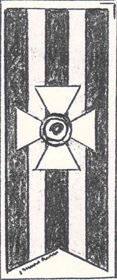 1917 г. 05.07.1917 г. Разм. 31 х 74 мм. Двухцветная печать на плотной белой бумаге. В центре вертикальная георгиевская лента с вырезом в нижней части в форме фестона. В центре ленты Георгиевский крест. Слева внизу параллельно краю ленты мелким шрифтом выходные данные: «Лит. Зархина».