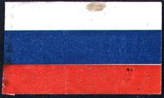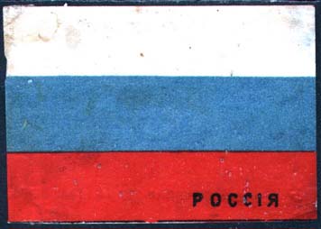 1914 г. Разм. 56 х 37 мм. Многоцветная двухсторонняя печать на тонкой белой бумаге. На лицевой стороне новый государственный флаг России. Слева белое поле шириной ≈ 10 мм. На оборотной стороне текст в две строки: ««На помощь жертвам войны»».