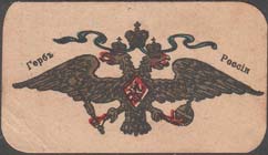 1914 г. 1915(?) г. Разм. рамки 40 х 56 мм. Двухцветная двухсторонняя печать на плотной белой бумаге. На лицевой стороне в двойной прямоугольной декоративной рамке портреты героев войны. На оборотной стороне звания и фамилии героев и текст: «Русские герои. Москва, Маросейка, 14. Лебедеву, тел. 60…
