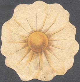 1915(?) г. Виньетка сложной формы в виде цветка ромашки разм. 46 х 46 мм. Двухцветная печать на серой бумаге.