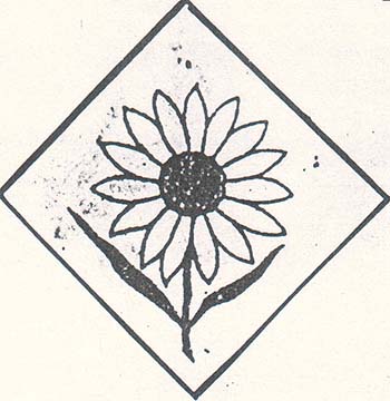 1917 г. 08.-09.10.1917 г. Ромб разм. 58 х 58 мм. Двухцветная печать на белой бумаге. В центре контурный рисунок цветка ромашки со стеблем и двумя листьями.