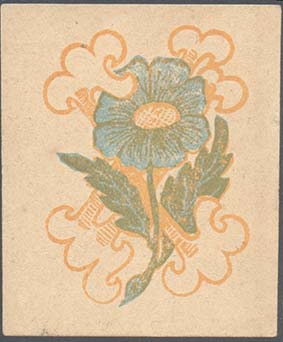 1915(?) г. Разм 39 х 66 мм. Двухцветная печать на белой бумаге. В центре на стебле три цветка ромашки. Слева и справа рамка в виде вертикальных полос.