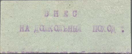1931 г. 07.03.1931 г. Разм. 76 х 56 мм. Одноцветная печать на серо-оранжевой бумаге. В центре в прямоугольной рамке разм. 54 х 38 мм текст в три строки: «Внес на дошкольный поход».
